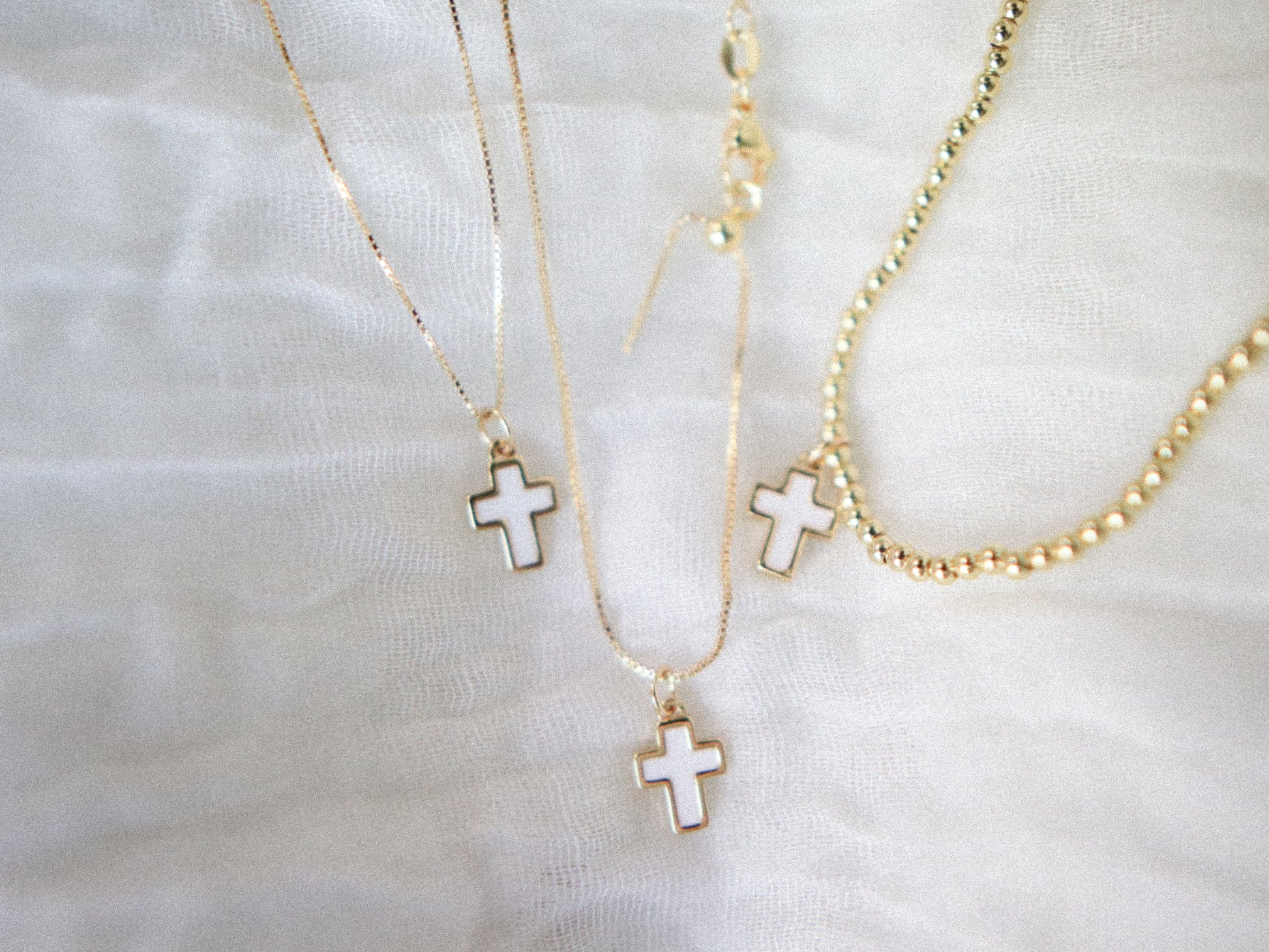 - 18K gold filled white enamel cross